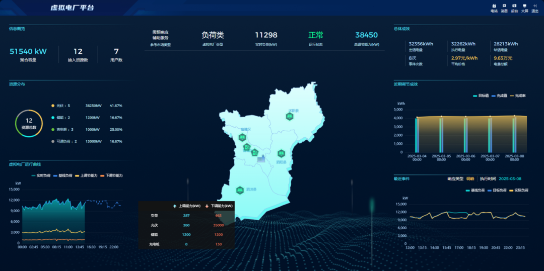在动态多变的电力市场环境中,永福数能虚拟电厂大数据平台能够迅速响应需求与价格的实时变化,实时调整能源资源的运行策略,有效应对市场波动,降低运营成本,这不仅为电力系统提供了更加稳定可靠的电力供应,也为客户创造了显著的经济效益。目前,永福数能虚拟电厂大数据平台已在江苏宿迁建成示范试点,实现对园区、电网在虚拟电厂管理中的价值体现,并为用户提供电力交易托管、虚拟电厂运营、碳交易等服务,实现降本增效、绿电零碳。